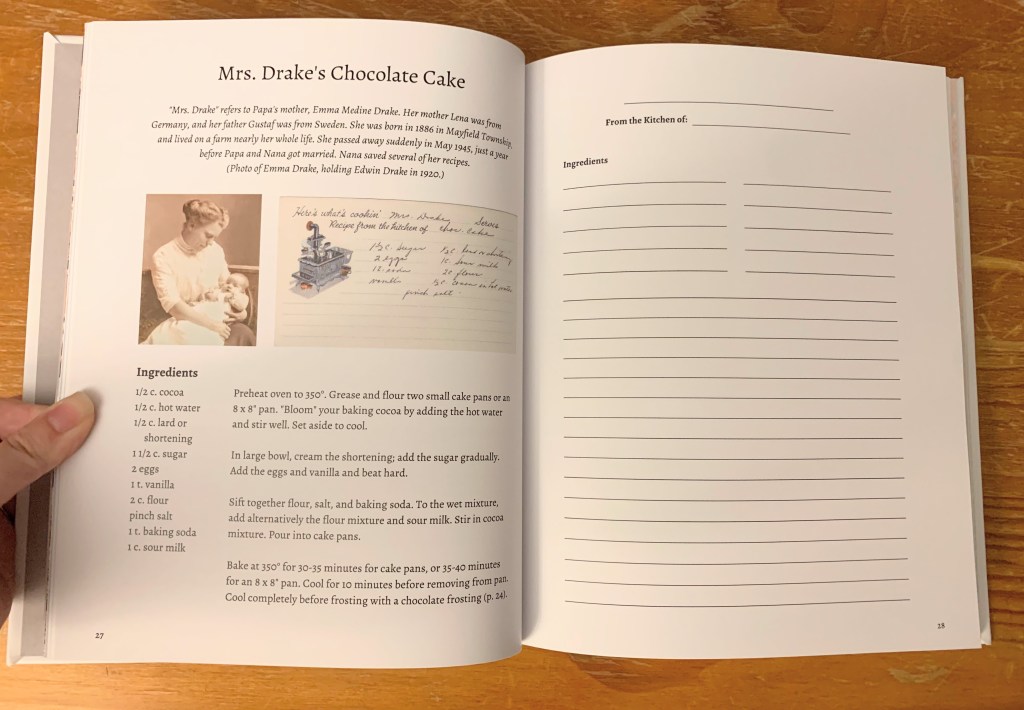 Ask your family for help with the recipes! This cookbook focused on our culinary heritage, and included many recipes from my grandmother and great-grandmother, but I also included some new family recipes that we enjoy today. My cousins recommended some recipes that they remembered growing up, that I was unaware of. They also helped me write out certain recipes that they make often that I hadn’t made before. I also included blank lined pages at the end of each chapter, so that everyone can write in their own favorite recipes that didn’t get included in the book.